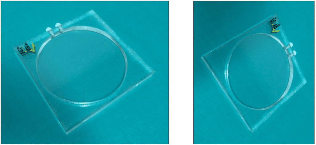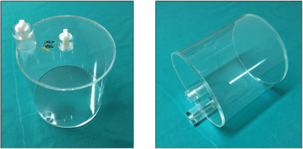 Para la determinación de la uniformidad tomográfica, el maniquí ha de ser llenado con una solución homogénea de agua y Tc-99m, lo que se consigue con el sistema de llenado de dos orificios con atrapamiento de burbujas.