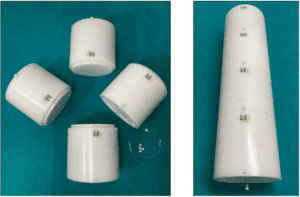 Constituido por un cilindro macizo de 20 cm de diámetro y 70 cm de longitud, de HDPE, con un taladro de 6,5 mm de diámetro paralelo al eje central del cilindro y desplazado una distancia de 4,5 cm del eje, para insertar la fuente lineal rellenable. Formado por cuatro secciones desmontables para facilitar su transporte/almacenamiento.