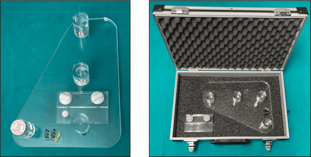 El conjunto de maniquíes para el control de calidad de gammacámaras se puede suministrar con contenedor de transporte tipo “flight case”.